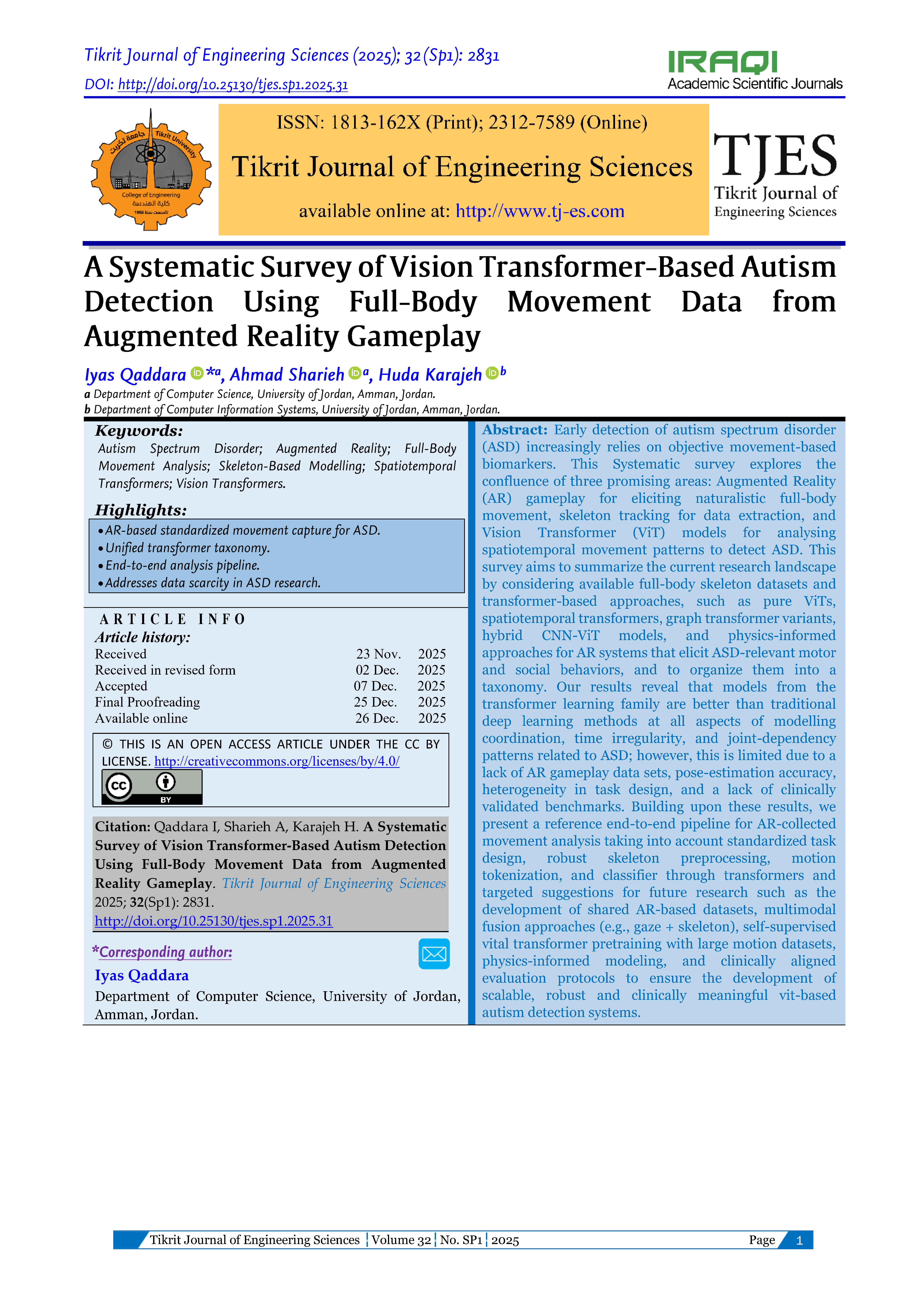 Kalam SA, Prome TR, Ullah MA. Machine Learning Approach for Identification of Autism Spectrum Disorder from Video Using OpenPose. 2024 27th International Conference on Computer and Information Technology (ICCIT) 2024:1720–1725.