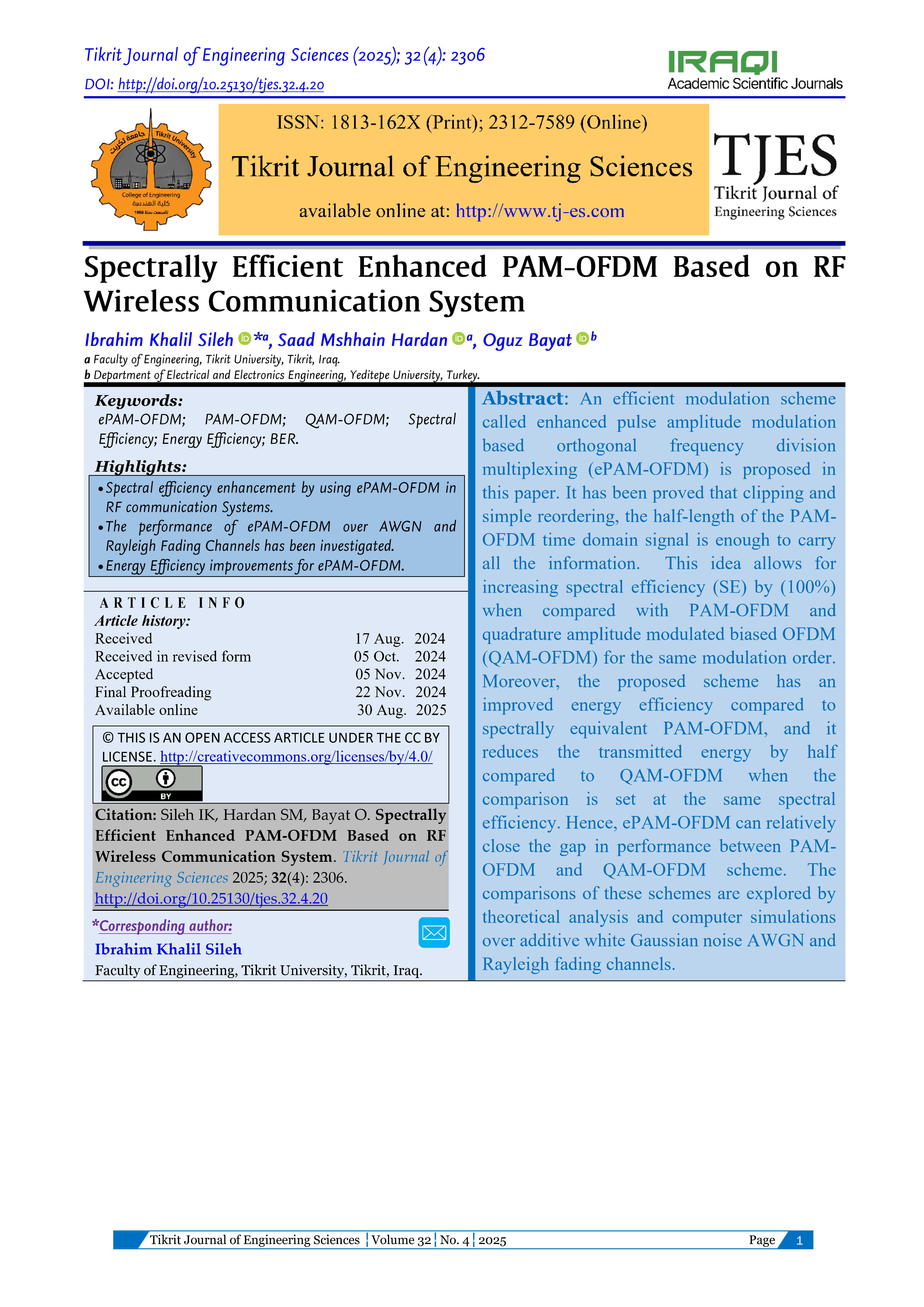 Hardan SM, Bayat O, Abdulkafi AA. A New Precoding Scheme for Spectral Efficient Optical OFDM Systems. Optics Communications 2018; 419: 125-133.