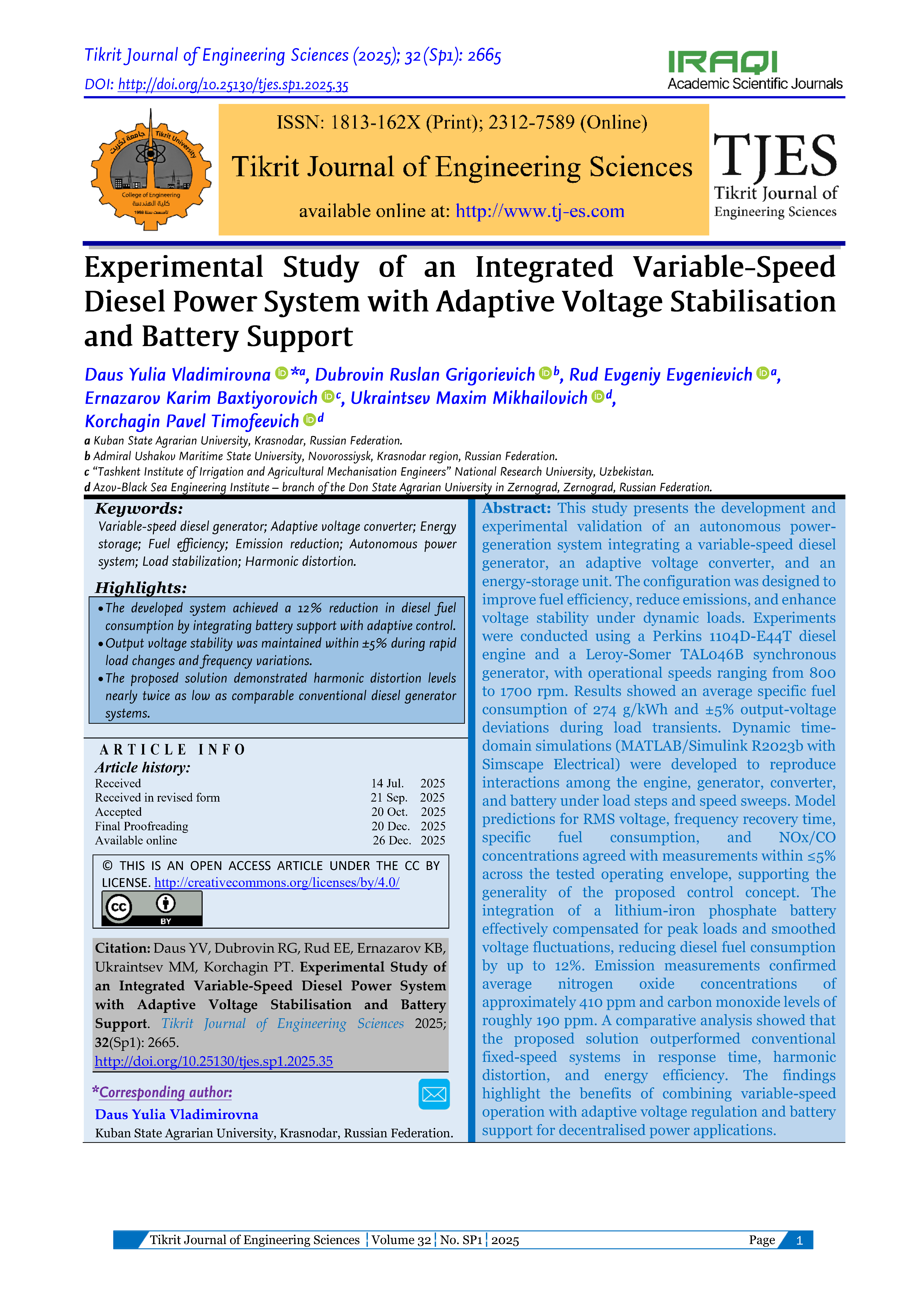 Experimental Study of an Integrated Variable-Speed Diesel Power System with Adaptive Voltage Stabilisation and Battery Support