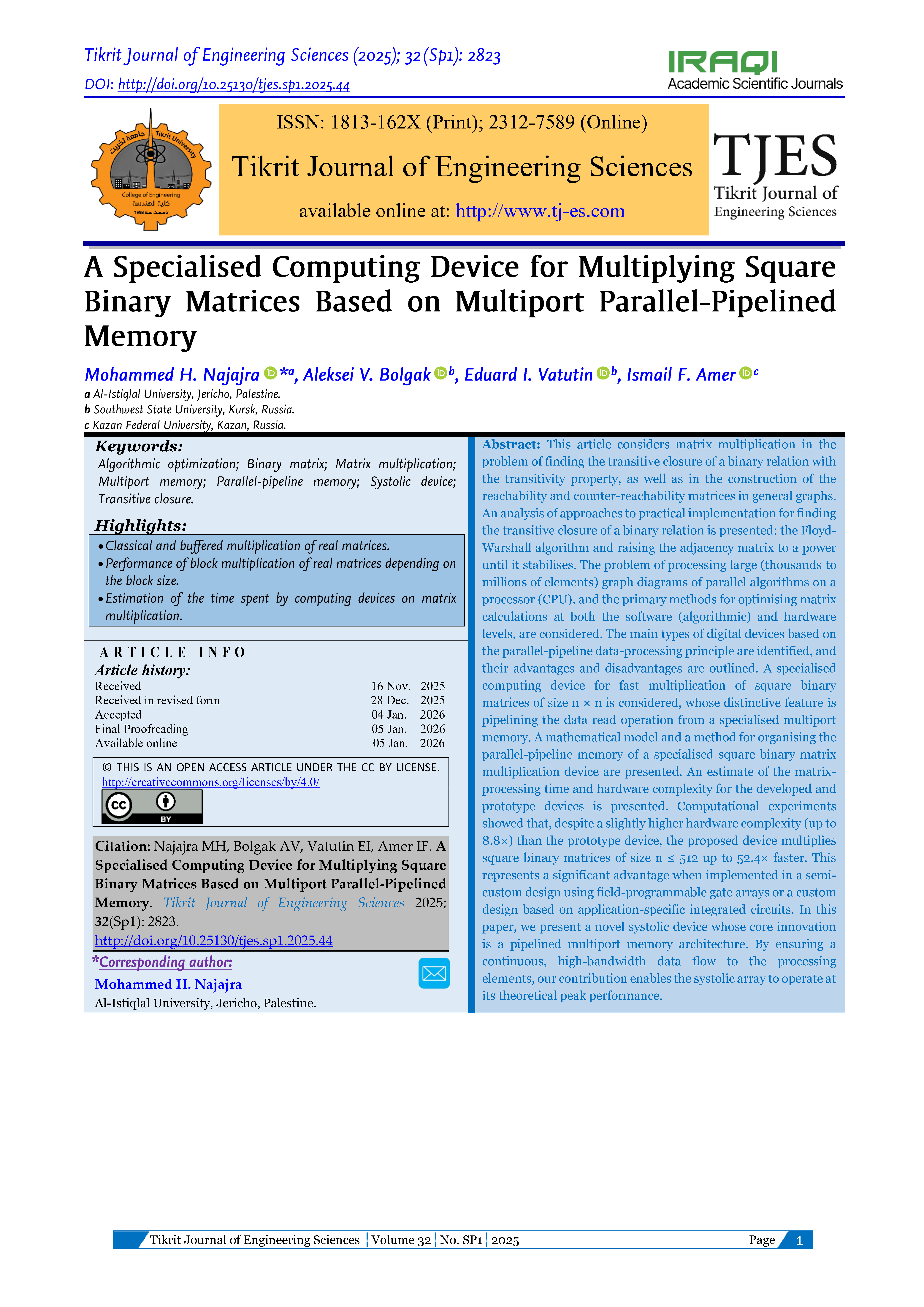 Bolgak AV, Vatutin EI. Device for Multiplying Binary Matrices. Patent for Invention No. 2025104287 2025.