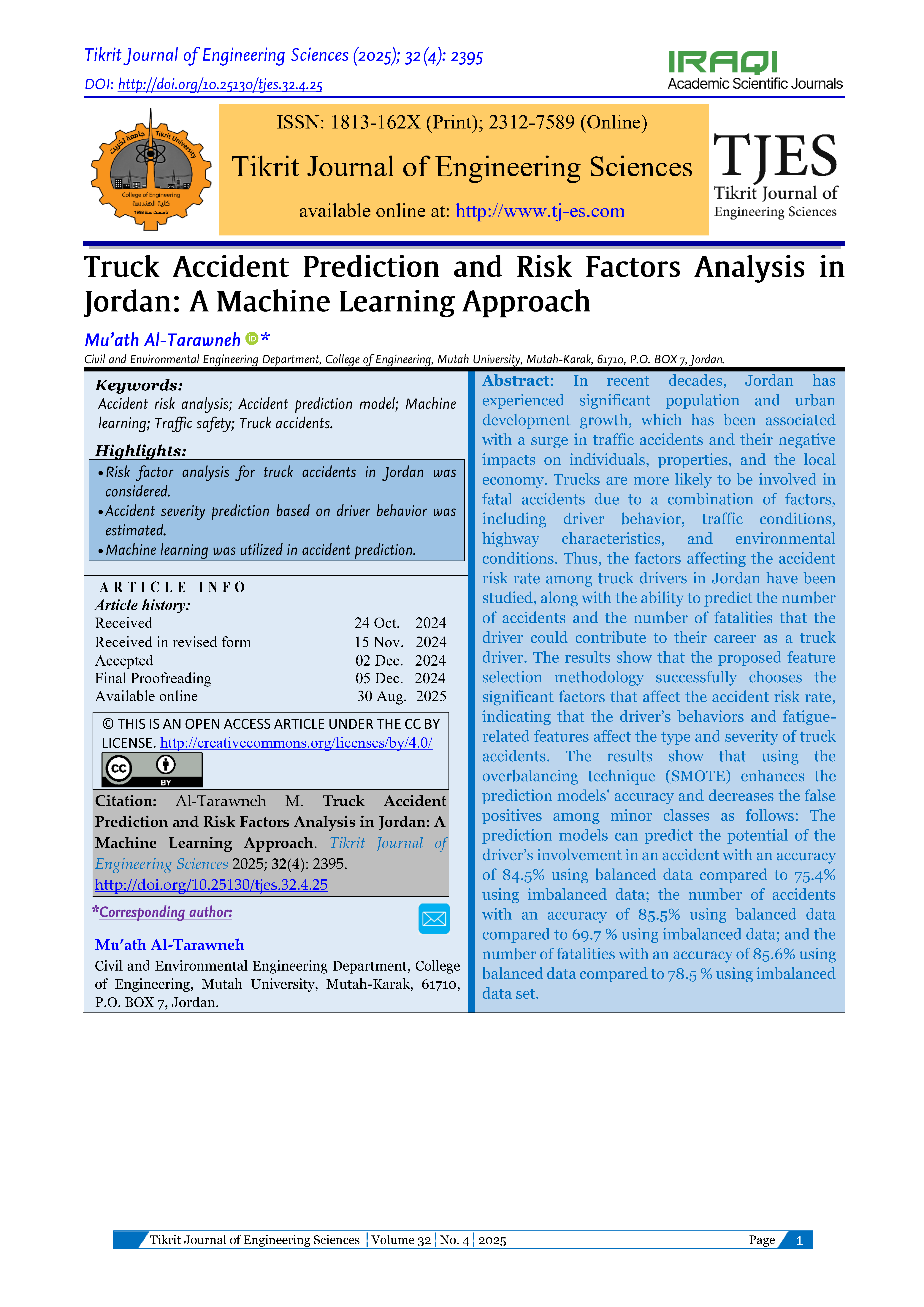 Truck Accident Prediction and Risk Factors Analysis in Jordan: A Machine Learning Approach